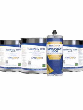 SpecPoxy 1000 is a two-component, low-viscosity, moisture-insensitive, high modulus, structural epoxy bonding adhesive and crack injection resin. This product is 100% solids, solvent-free, low odor, and high strength, ideal for bonding concrete, steel, and wood, gravity feed or pressure injection crack repairs, and anchoring bolts, dowels, and reinforcing bars.SpecPoxy 1000 is a two-component, low-viscosity, moisture-insensitive, high modulus, structural epoxy bonding adhesive and crack injection resin. This product is 100% solids, solvent-free, low odor, and high strength, ideal for… -