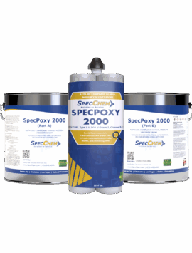 SpecPoxy 2000 is a two-component, multi-purpose, high-modulus, moisture-tolerant epoxy bonding adhesive that meets ASTM C881 requirements for Types I, II, IV & V, grade 2, classes B&C. This medium-viscosity, 100% solids, solvent-free adhesive is designed for a range of uses including bonding fresh concrete to hardened concrete, anchoring bolts, dowels, and reinforcing steel, and gravity filling cracks in concrete.SpecPoxy 2000 is a two-component, multi-purpose, high-modulus, moisture-tolerant epoxy bonding adhesive that meets ASTM C881 requirements for Types I, II, IV & V, grade 2, classes B&C. This medium-viscosity, 100%…